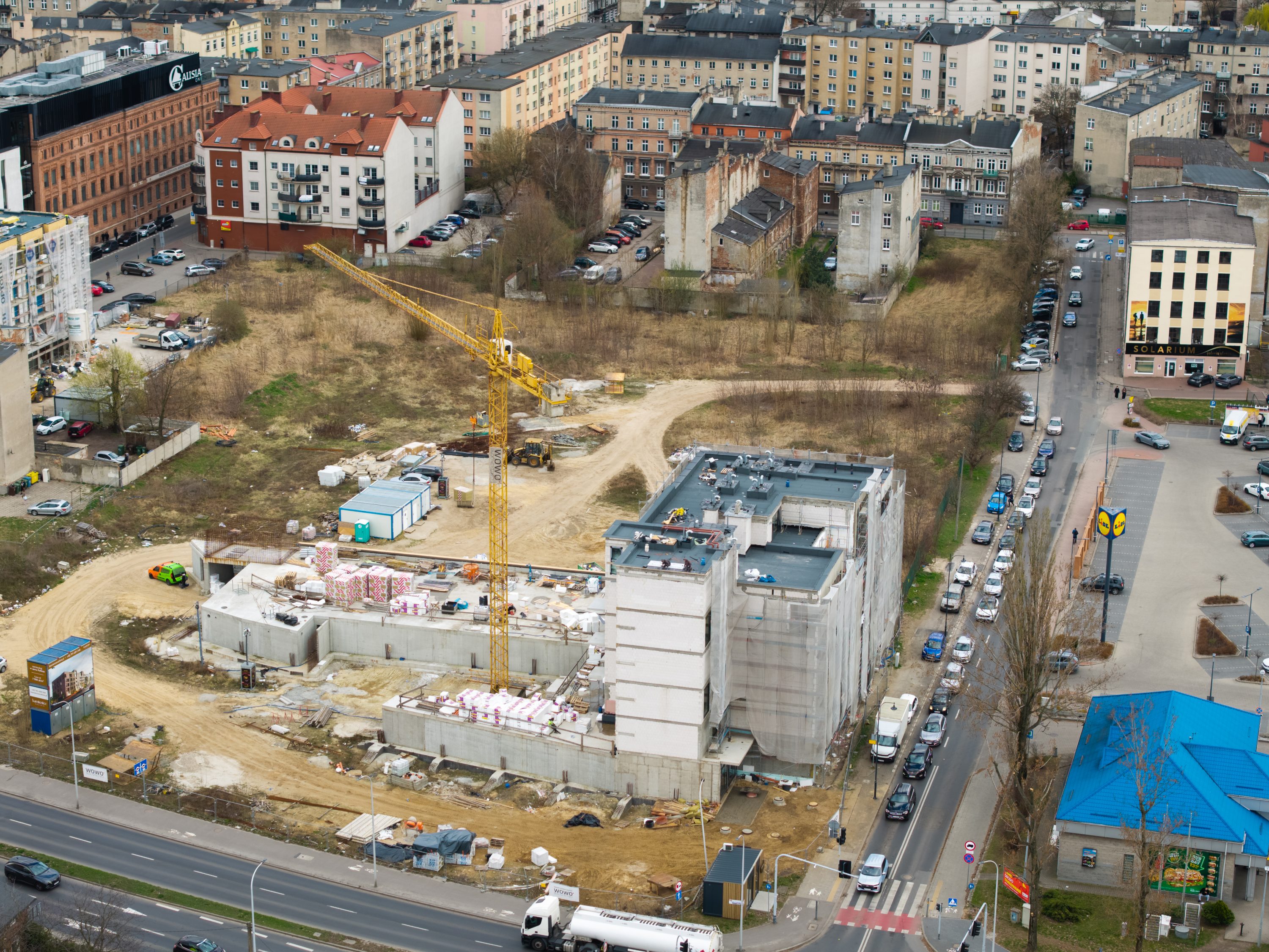 Pierwszym etapem inwestycji jest budynek A (naprzeciwko stacji benzynowej Amic), gdzie znajduje się 38 mieszkań o powierzchni od 26,89 do 104,11 m². Dodatkowo, w budynku A na parterze znajdować się będzie lokal usługowy. Dostępne również będą komórki lokatorskie oraz miejsca postojowe w hali garażowej.